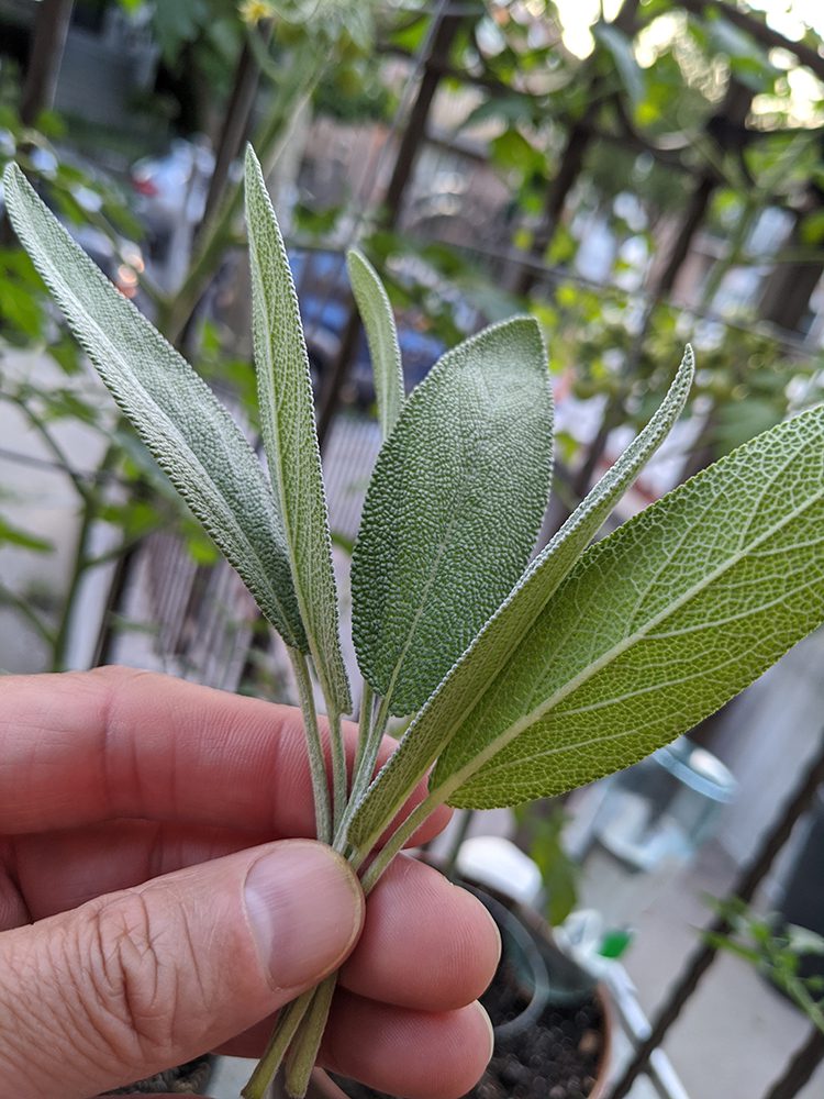 Sage grows super fast and it only received 4 hours of sunlight. You have to harvest it often or just trim off any dying leaves so it can regrow new ones. You can also cut off entire branches and dry them out.