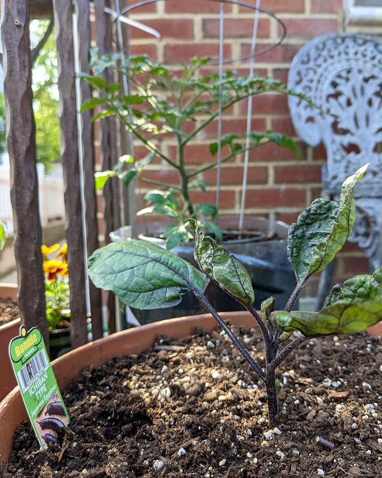 Ichiban Japanese Eggplants are the ultimate optimists. This had a slow rough start but it ended up thriving, giving me at least a dozen eggplants.