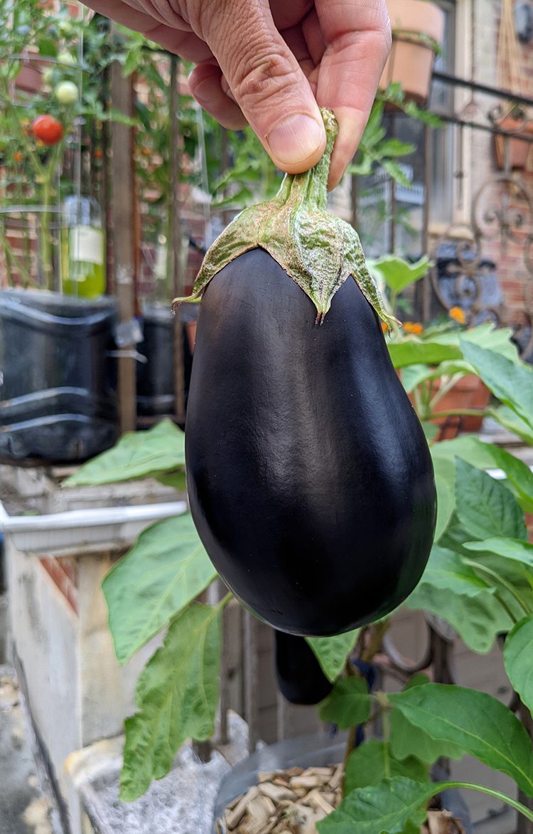 First time growing large eggplants in 5-gallon containers, and this is the largest it got.