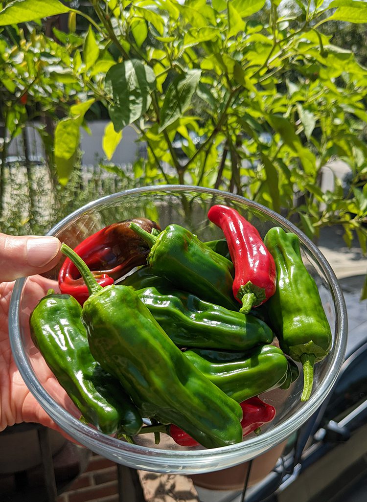 Tabasco peppers, banana peppers, thyme, sage, dill, Shishito peppers,
