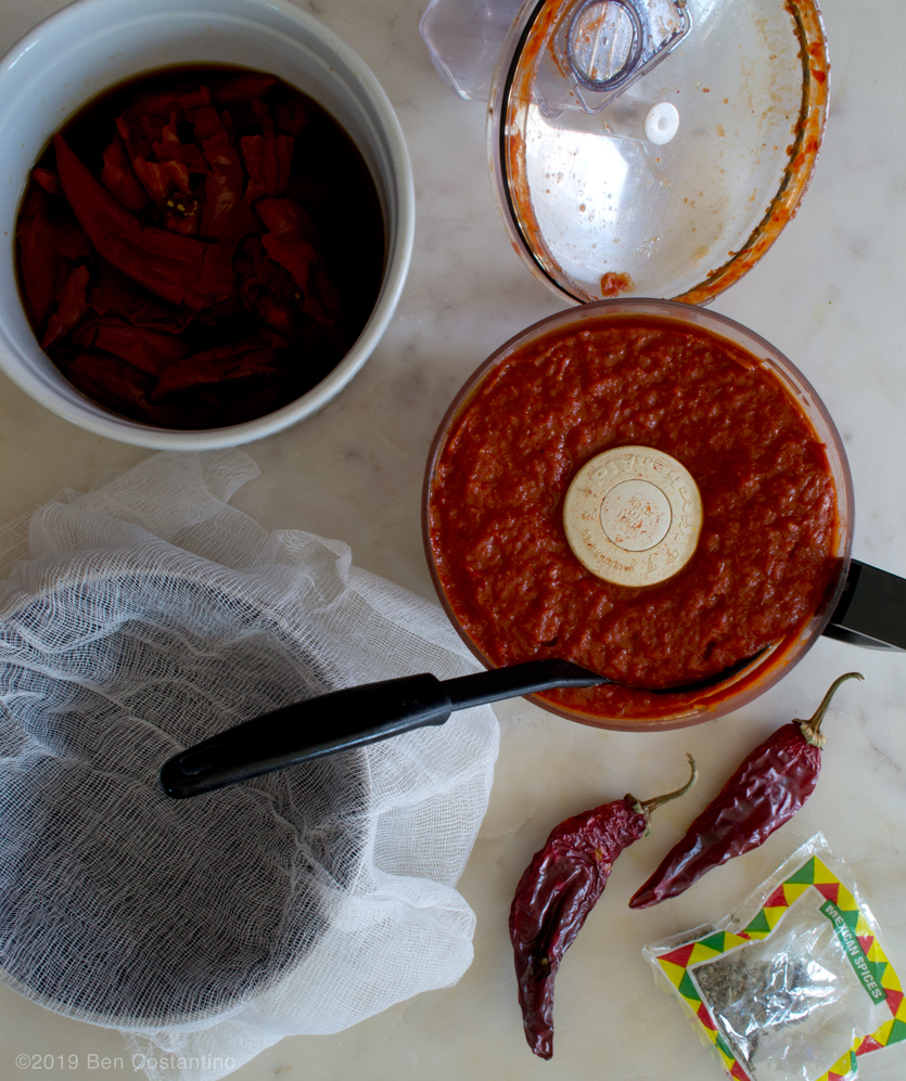 My first attempts at red enchilada sauce were met with mediocre results because I put in mediocre effort with the lack of straining. To get a smooth, silky texture without seeds it REALLY requires some patience with a cheesecloth and/or fine mesh strainer. At the end, your kitchen can easily look like a horror movie murder scene if you’re not careful about constant cleanup. To avoid this, have a damp, bleached towel on hand to attend to any spills so your surfaces don’t get stained. You can also lay down some newspaper on your table or counter and work on that.